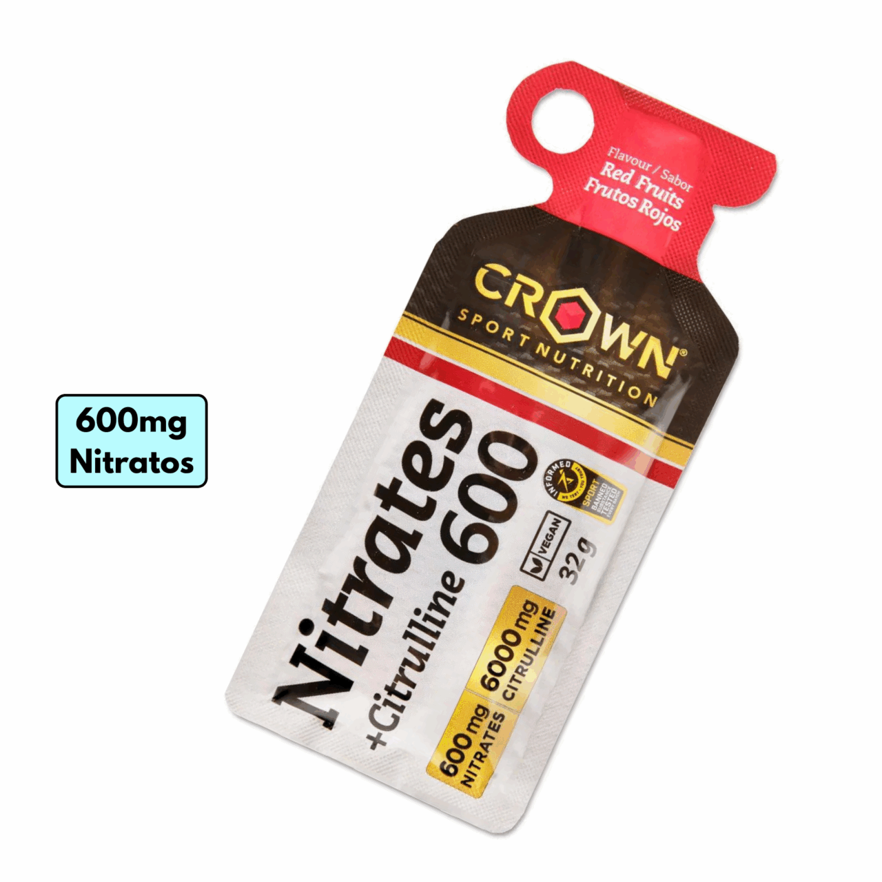 El Nitrates 600 + Citrulline Shot Gel de Crown combina en un solo formato dos compuestos con gran respaldo científico en el ámbito del rendimiento deportivo: 600 mg de nitratos naturales procedentes de extracto de remolacha y 6000 mg de citrulina malato. Gracias a su formato en gel líquido listo para tomar, resulta una opción muy práctica para consumir antes del entrenamiento o incluso transportarlo fácilmente durante competiciones.